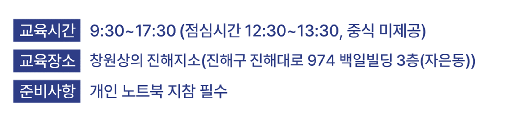 - 수강을 취소하고자 하시는 경우에는 최소 개강일 3일 전까지 교육기관에 취소 의사를 전달 부탁드립니다.
